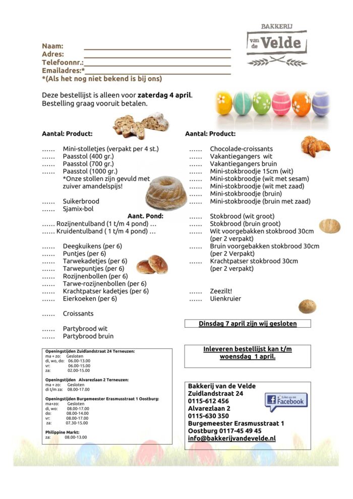 Download hier onze paasbestellijst om af te halen op 4 april.